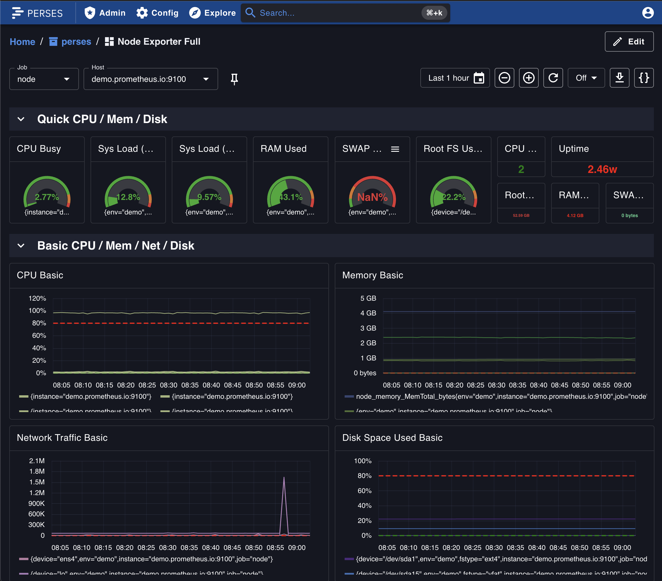 Here is an example of a Perses dashboard querying Prometheus for data:
